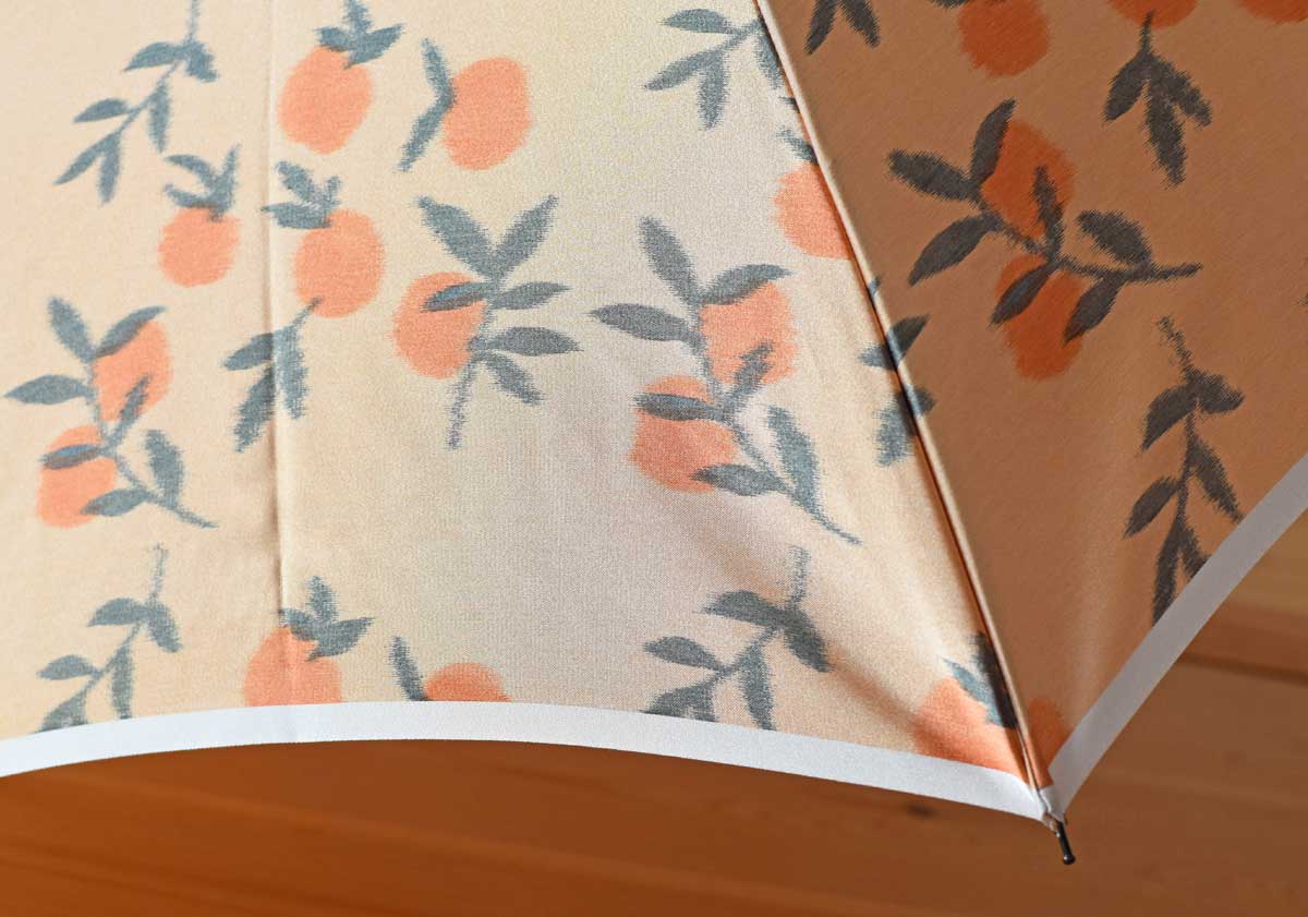 A rain and sun umbrella with a three-colored nut design that is a hogushi-ori to create a soft atmosphere like a watercolor painting.
