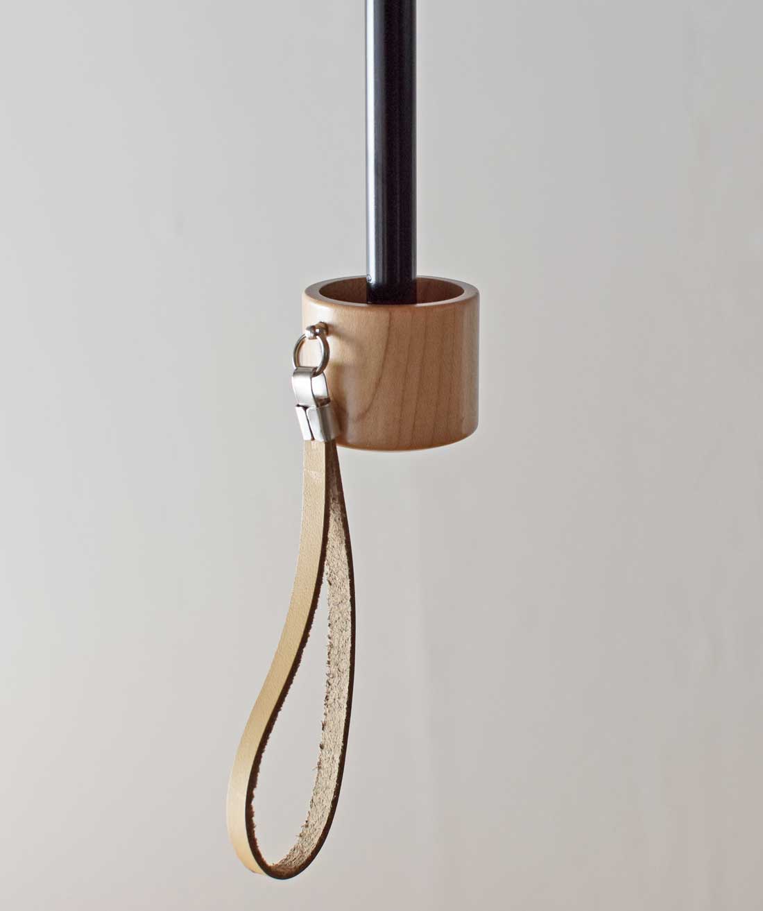 This folding umbrella is designed so that the tip of the umbrella fits into a groove in the handle, so you can carry it with the ribs extended.
