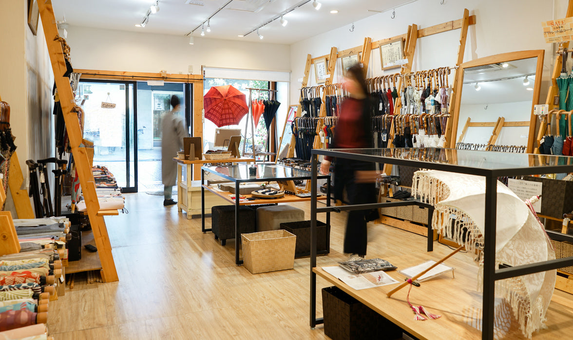 創業当時からなじみのある東京都東日本橋に実店舗を構えています。ナチュラルな雰囲気が漂う昔ながらのショップには、職人たちの想いのこもった日本製の手づくり洋傘「小宮商店」の商品から、アイデアの詰まった機能的な海外製洋傘「小宮商店 Daily Use Umbrella」の商品まで、お客様のライフスタイルに合わせて様々な洋傘をご用意しております。