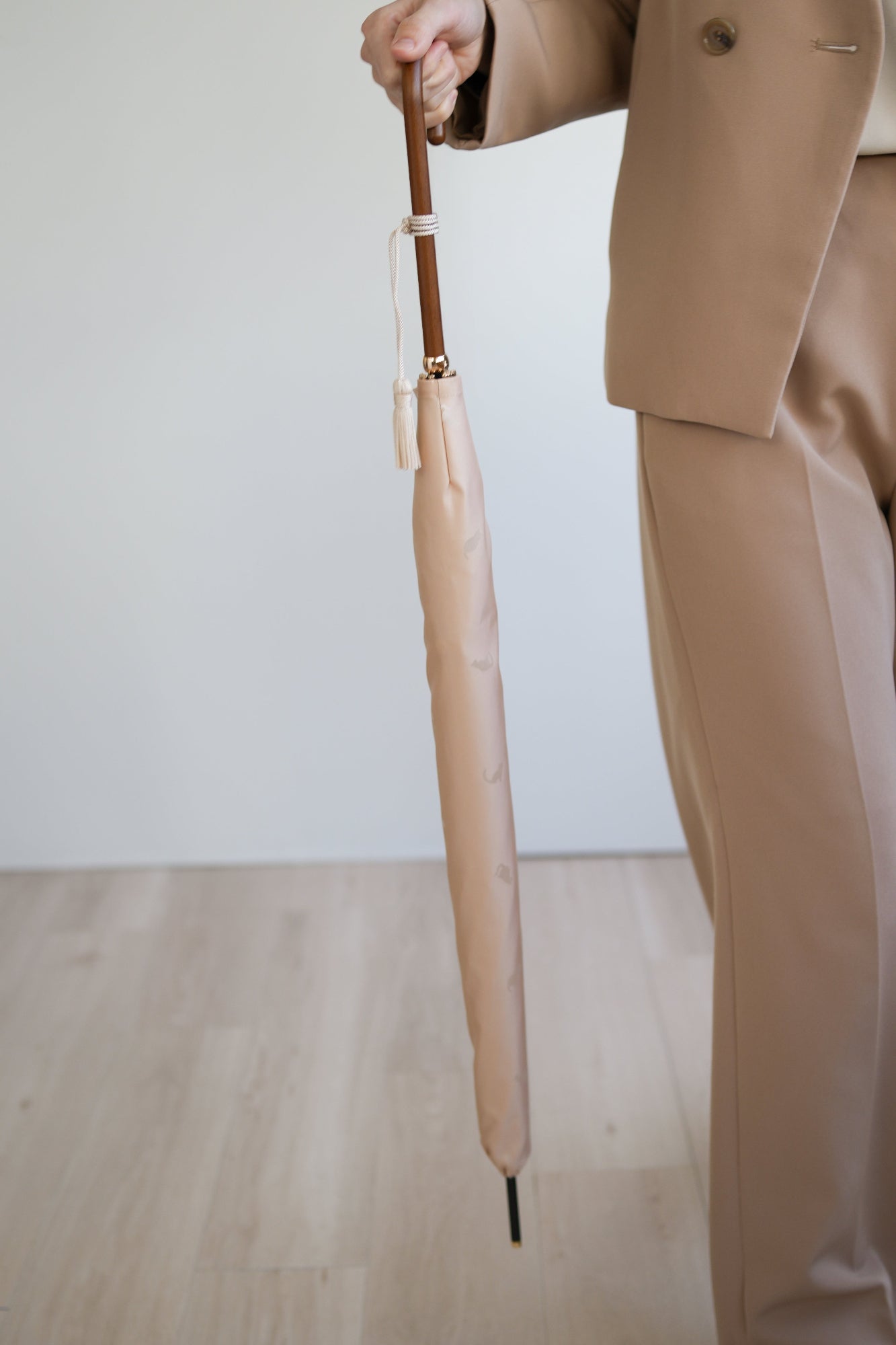 細い骨、細い石突き、細い手元、とすべて「スリム」にこだわった、すっきりとした立ち姿が魅力の長傘です。 共生地の傘袋が付属しているため、持ち運びや保管の際にも活躍してくれます。