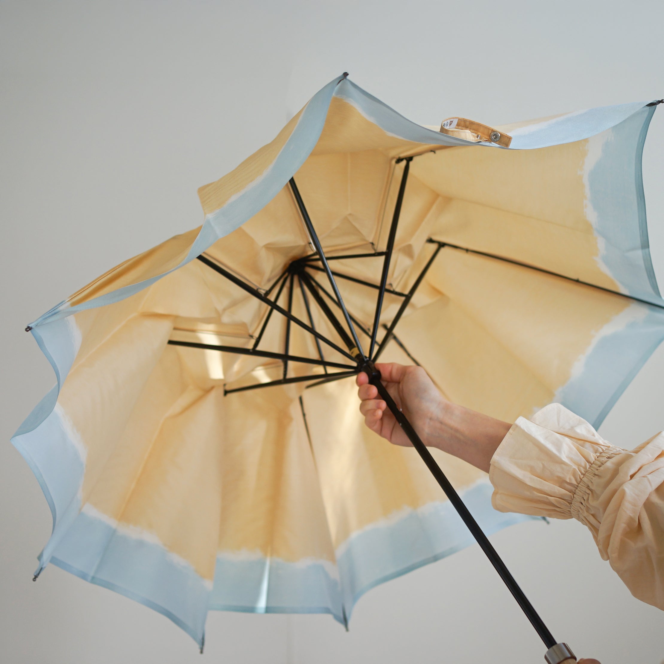 大きい生地を傘の幅に合うように縫う必要がないため、ミシン目もなく見た目もスマートで、スタイリッシュに見えるのはもちろん、長くご愛用いただいてもほつれる心配がないことも魅力のひとつです。