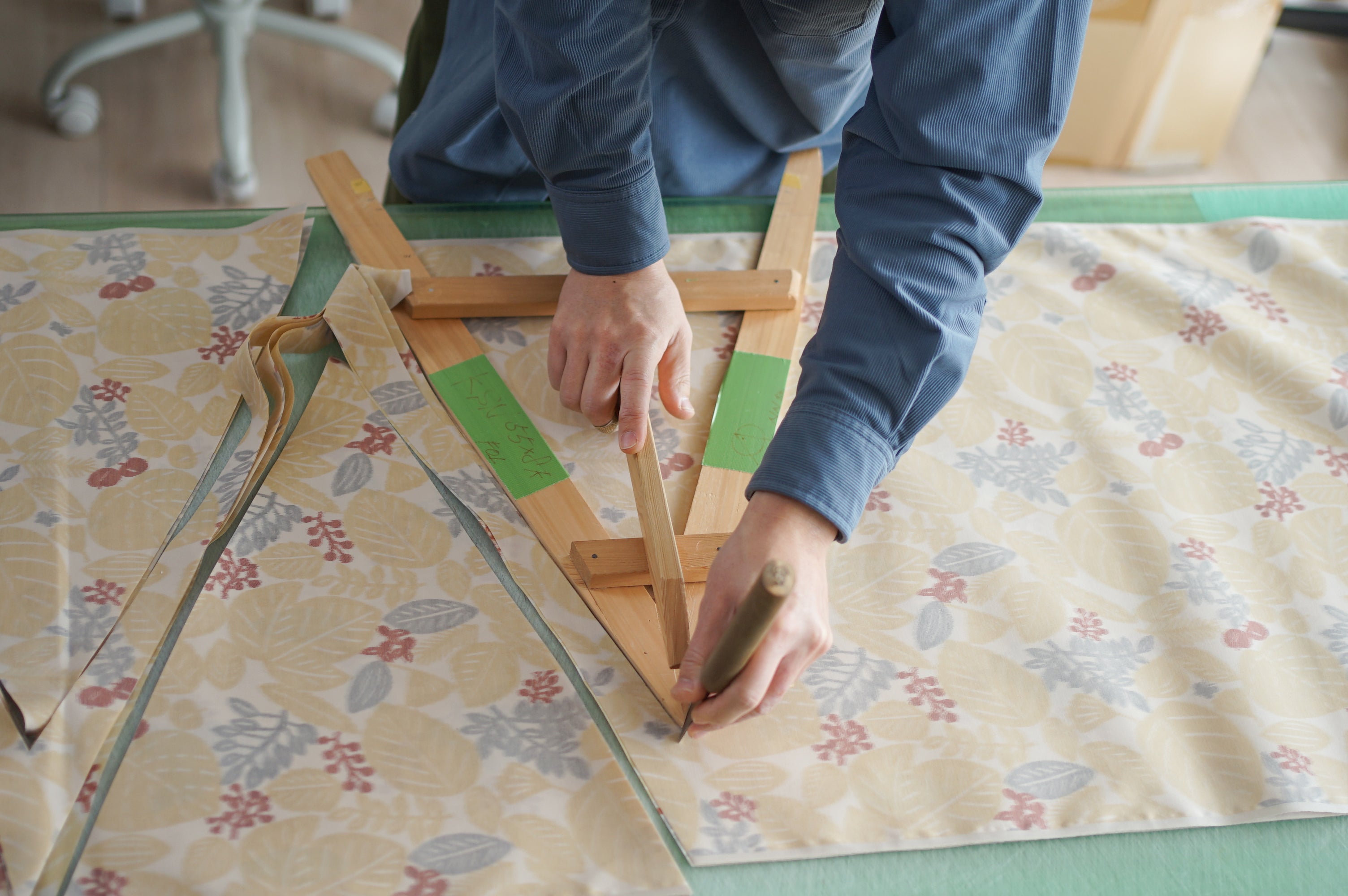 ポリエステルと綿の混合生地を扱うのは初めての取り組みのため、伸縮の程度を確認しながら、より丁寧に、慎重に行いました。