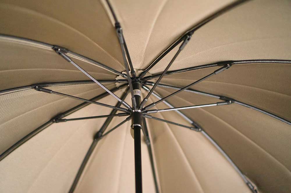 大きい生地を傘の幅に合うように縫う必要がないため、ミシン目もなく見た目もスマートで、スタイリッシュに見えるのはもちろん、長くご愛用いただいてもほつれる心配がありません。