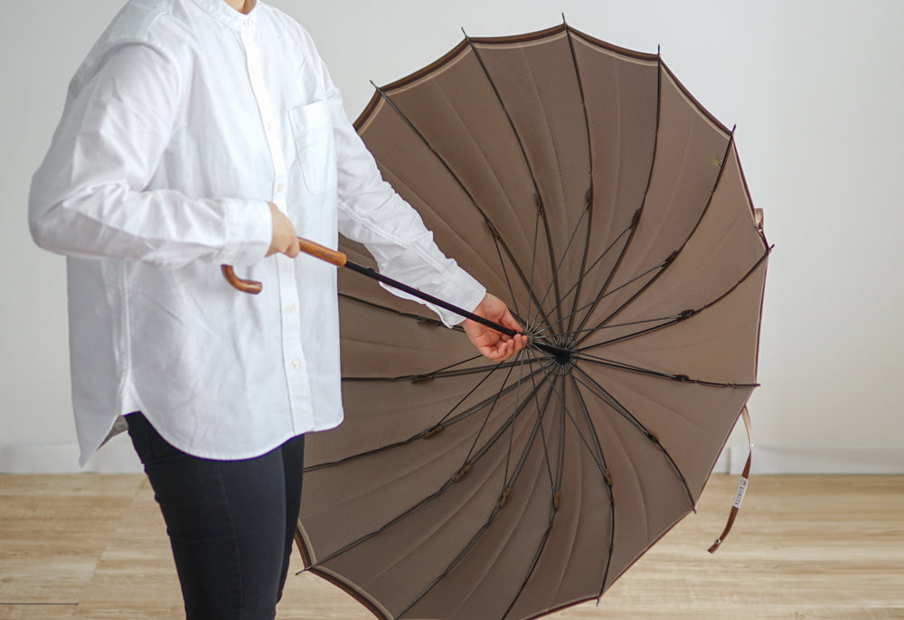 16本骨の長傘ならではの美しい差し姿が印象的な長傘です。カーボン骨を使用しているため、丈夫なうえに骨がお起きても軽いのが魅力です。