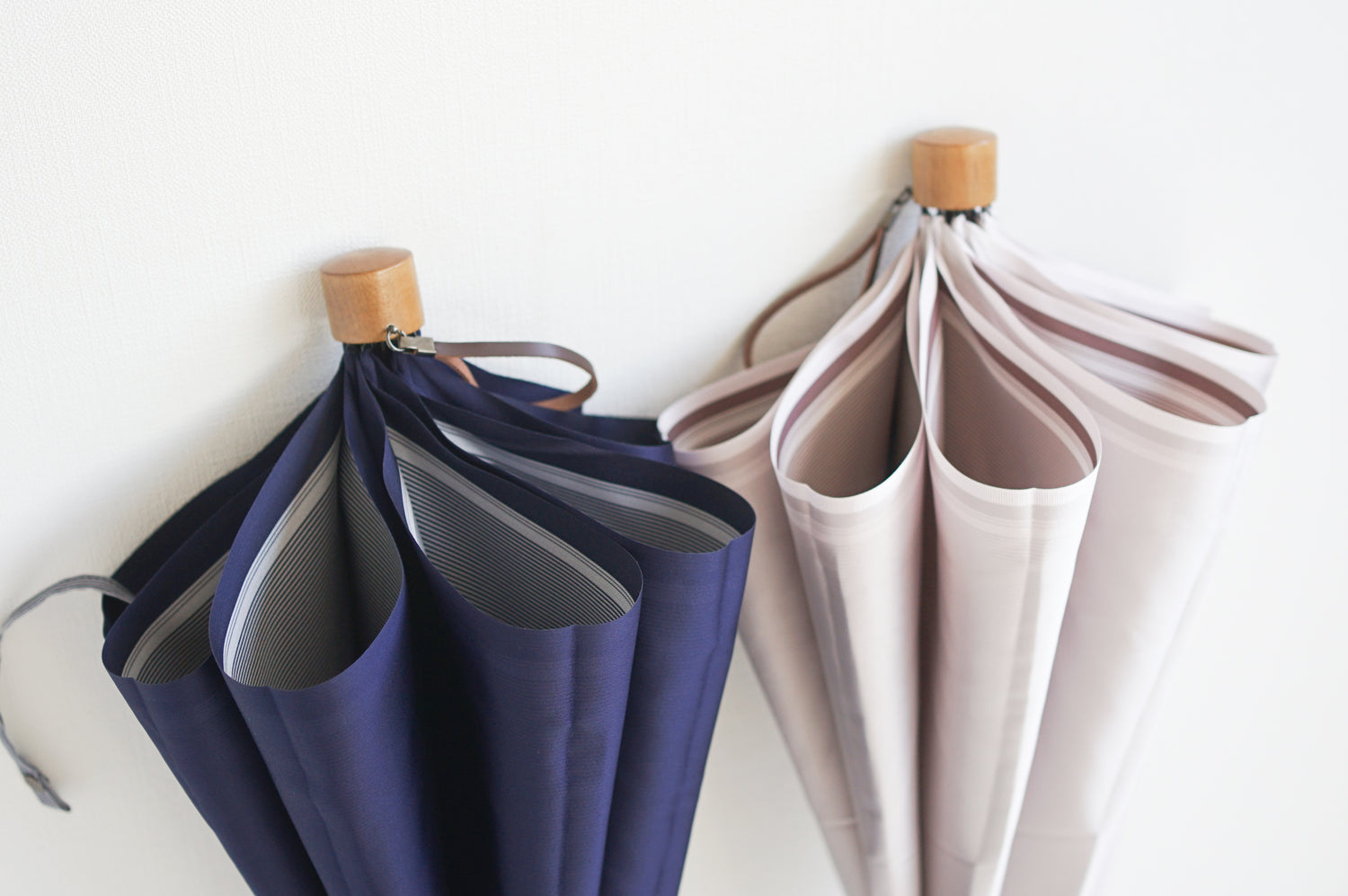 大きい生地を傘の幅に合うように縫う必要がないため、ミシン目もなく見た目もスマートで、スタイリッシュに見えるのはもちろん、長くご愛用いただいてもほつれる心配がありません。